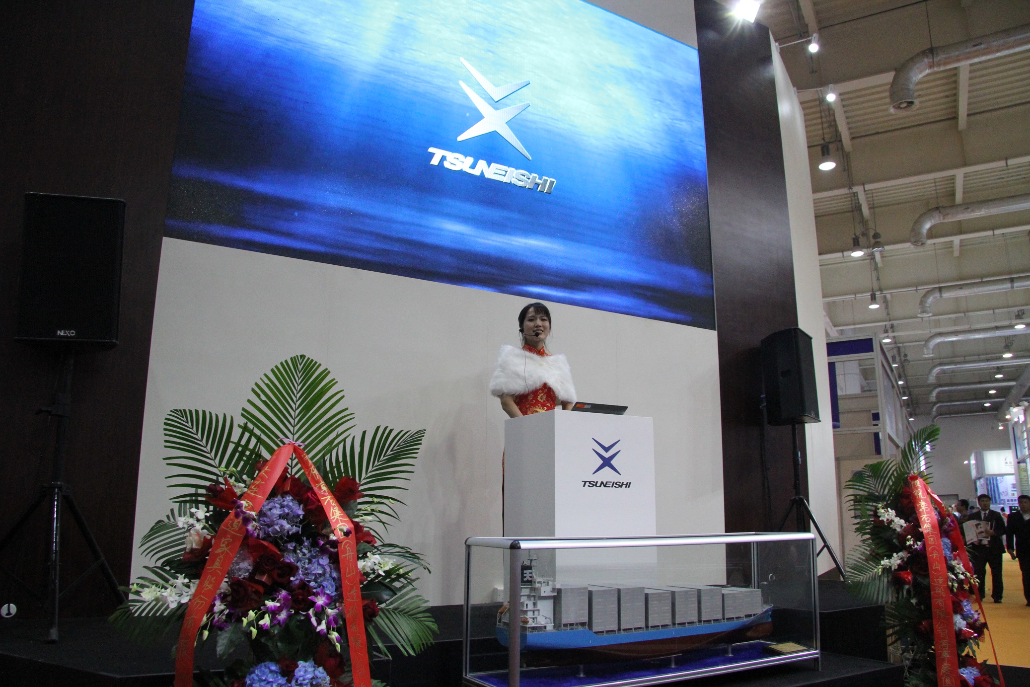 在“SHIPTEC CHINA 2016”的展廳內(nèi),常石舟山介紹了為應(yīng)對多種市場需求而開發(fā)的2800TEU集裝箱運(yùn)輸船、LR(Large Range I)型成品油輪、以及為擴(kuò)大造船種類正在建設(shè)中的牲畜運(yùn)輸船。