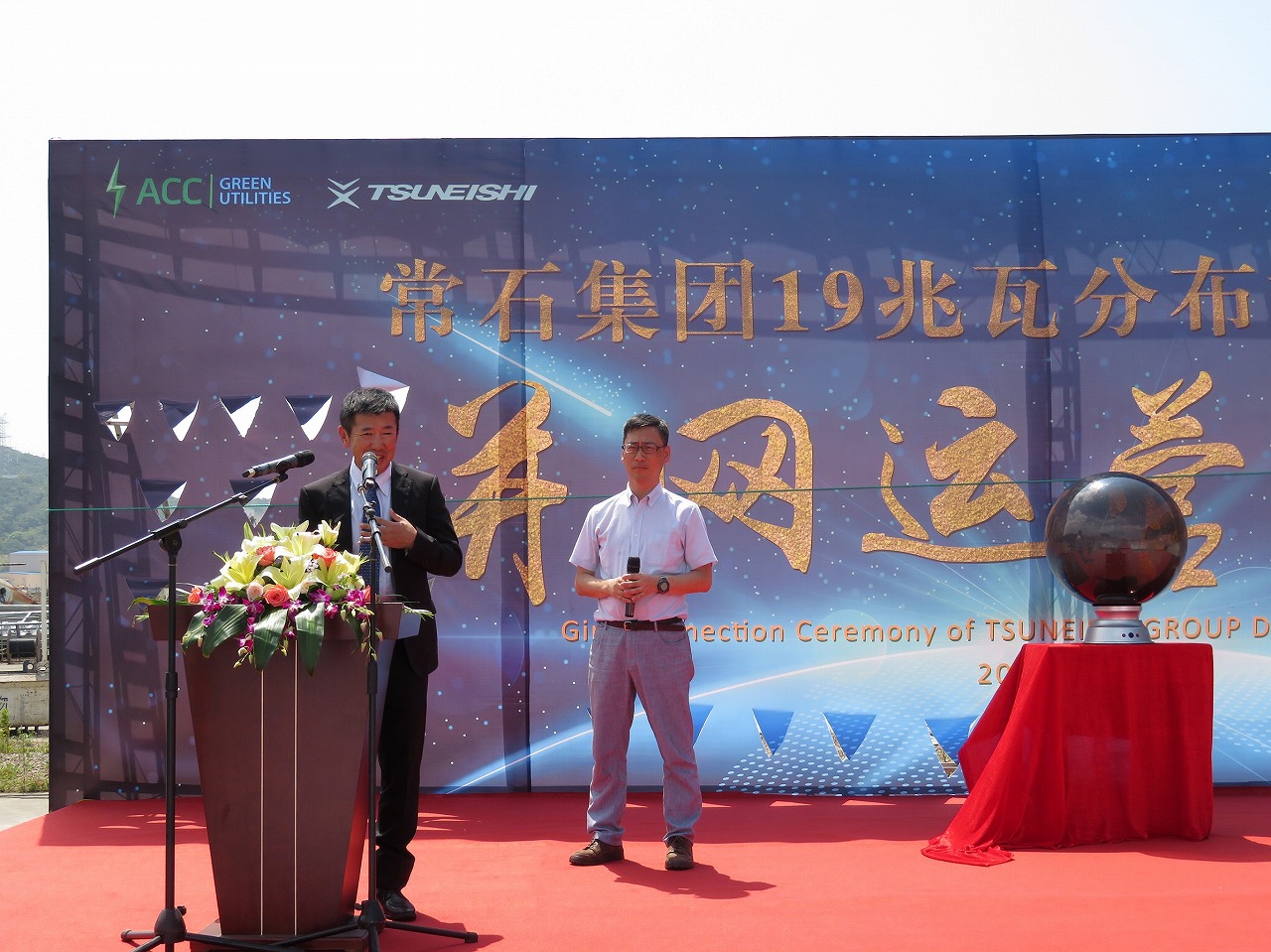 8月3日,該電站的并網(wǎng)運(yùn)營(yíng)儀式在常石舟山工廠隆重舉行。總經(jīng)理奧村幸生在致辭中說(shuō):“這項(xiàng)大規(guī)模光伏電站項(xiàng)目,使用了1年時(shí)間順利竣工,我感到非常高興。在日本擁有百年歷史的常石集團(tuán)一直以造船為事業(yè)核心,集團(tuán)海外基地之一的常石舟山工廠,以可持續(xù)發(fā)展為目標(biāo),面向未來(lái)一百年的發(fā)展將繼續(xù)作出不懈的努力。要實(shí)現(xiàn)這個(gè)目標(biāo)離不開(kāi)當(dāng)?shù)卣⒕用窦案骱献鞣降闹С帧N覀儗⒈谐J瘓F(tuán)DNA中一貫堅(jiān)持的‘與地區(qū)社會(huì)共同發(fā)展’的精神,以保護(hù)環(huán)境為己任,通過(guò)本公司的持續(xù)發(fā)展為地區(qū)作出更大的貢獻(xiàn)。”